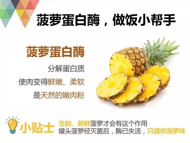 菠萝蛋白酶虽然对人体的口腔有刺激用,但同时它是天然的嫩肉粉,做饭的小帮手。