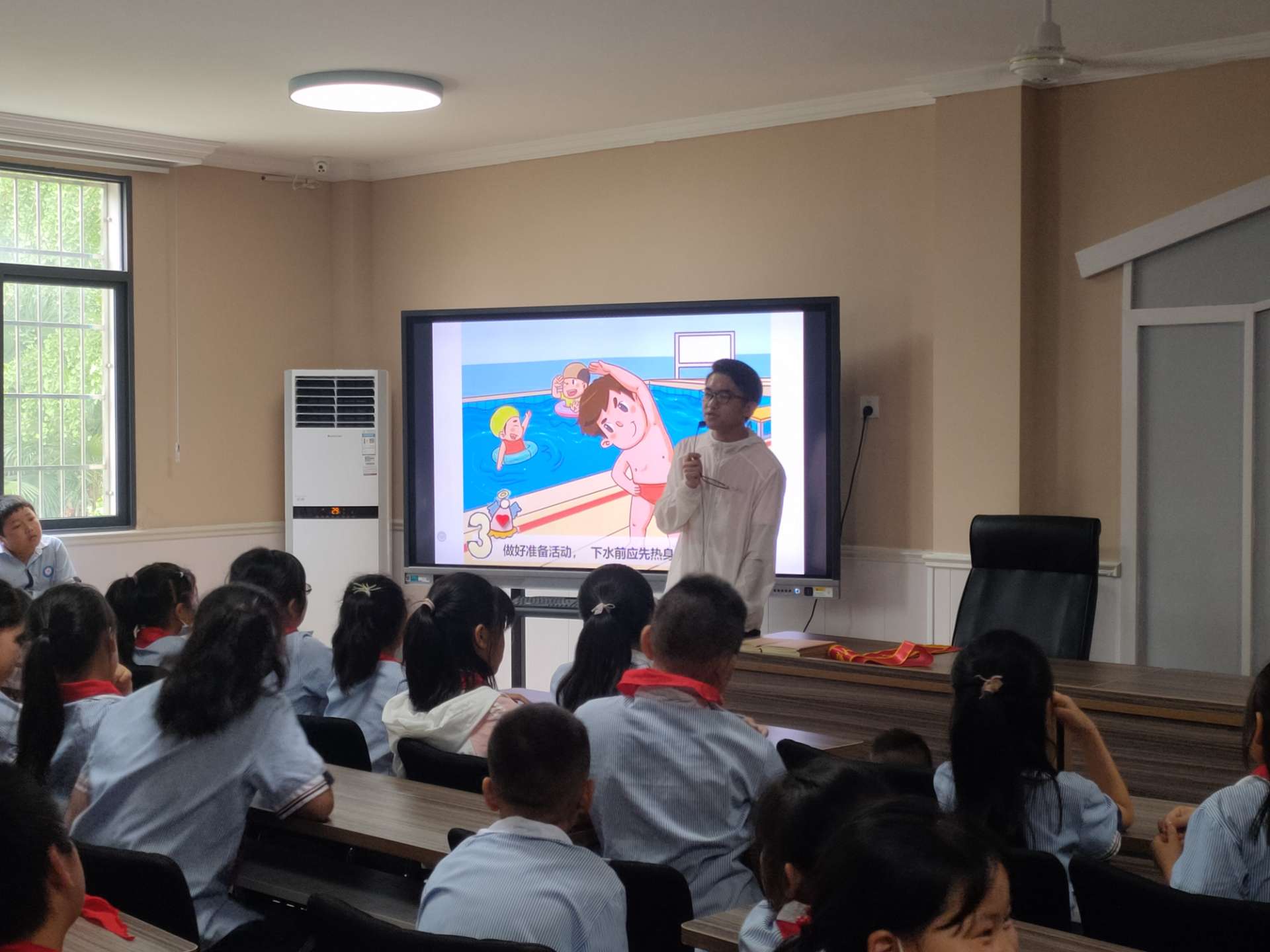 本次活动采用新媒体方式为中小学生们科普防溺水知识,主讲员向同学们介绍真是溺水事件,随后向同学们介绍溺水事故的危害,并现场模拟溺水事件发生时的求救和自救方法。除传统方式以外,还通过观看视频、知识抢答、现场互动等方式使同学们进一步了解溺水事故的严重性。现场情况良好,同学们也参与积极互动,为本次活动增添诸多趣味性。