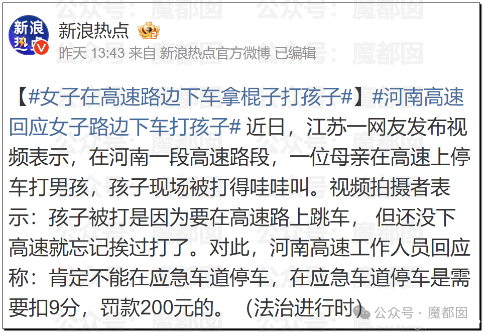 那么到底孩子做了什么需要特地停车下来狠抽一顿呢?母亲回应:孩子当时要跳车。